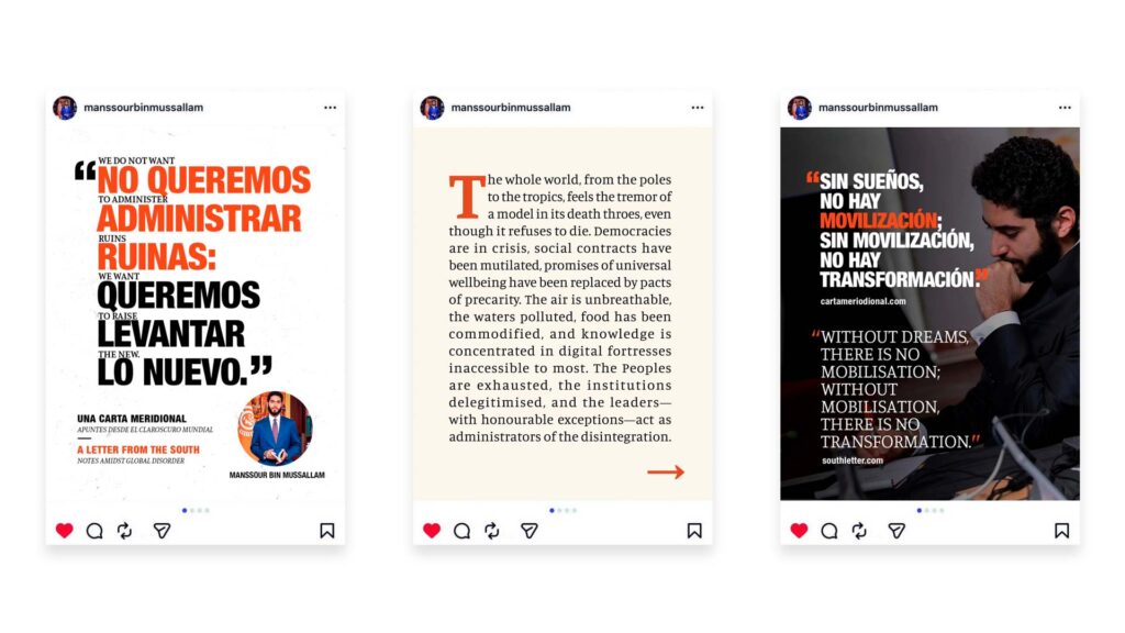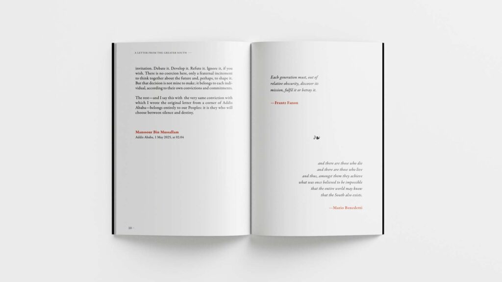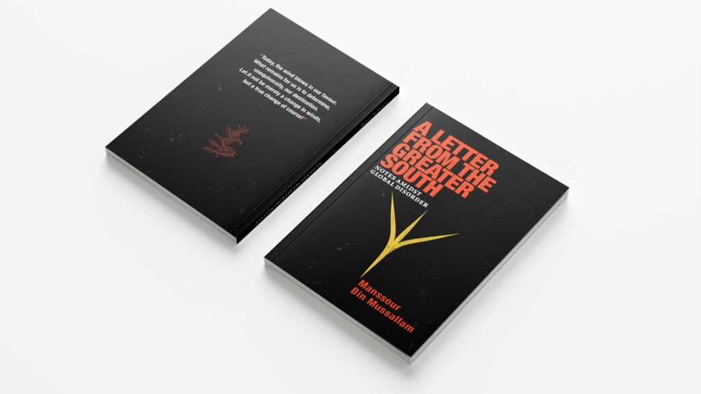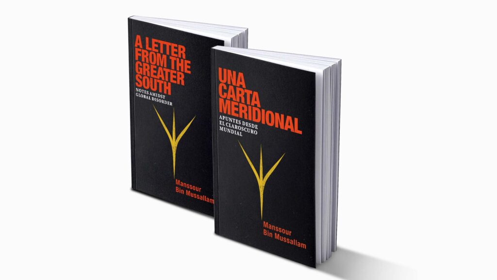 Editorial and visual direction for the book “A Letter from the Greater South. Notes Amidst Global Disorder” by Manssour Bin Mussallam.