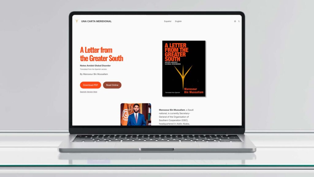 Served as editor, art director, and communications advisor for the first publication of the Secretary-General of the Organisation of Southern Cooperation (OSC), Manssour Bin Mussallam. The project involved developing a visual and editorial approach that could support the conceptual depth of the content while maintaining clarity and readability.